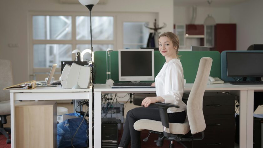 Nie tylko ubrania mają wpływ na wygodę w pracy – dodatki są równie istotne. Buty na niskim obcasie, baleriny lub klasyczne mokasyny pozwalają komfortowo przechodzić cały dzień, a przy tym pasują do formalnych zestawów. Torby o prostym kroju, wykonane z trwałych materiałów, mieszczą wszystko, co potrzebne, nie zaburzając proporcji sylwetki.